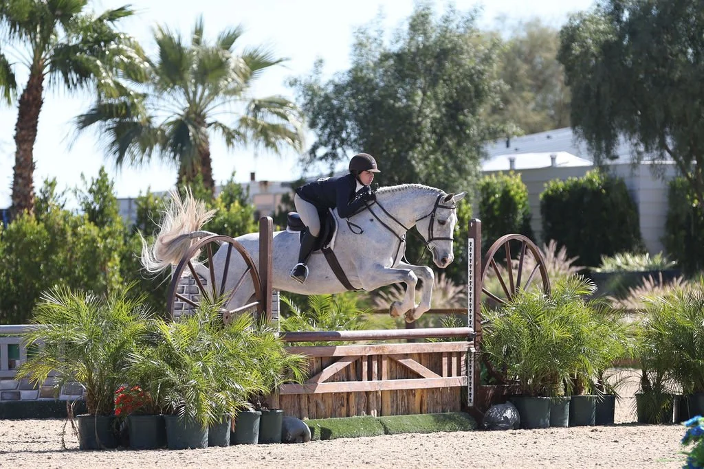 17.1 Seven year old Canadian Warmblood. Showed he’s a competitor in both the Hunter ring and Equitation ring at Thermal. He snagged a 2nd in the 7 year old under saddle proving even in great company he is a top contender. He finished out the two weeks with a great round in the 3’3” NHS medal with a junior. He is very comfortable with all the flat buttons developing well. No stop, great change, huge step.