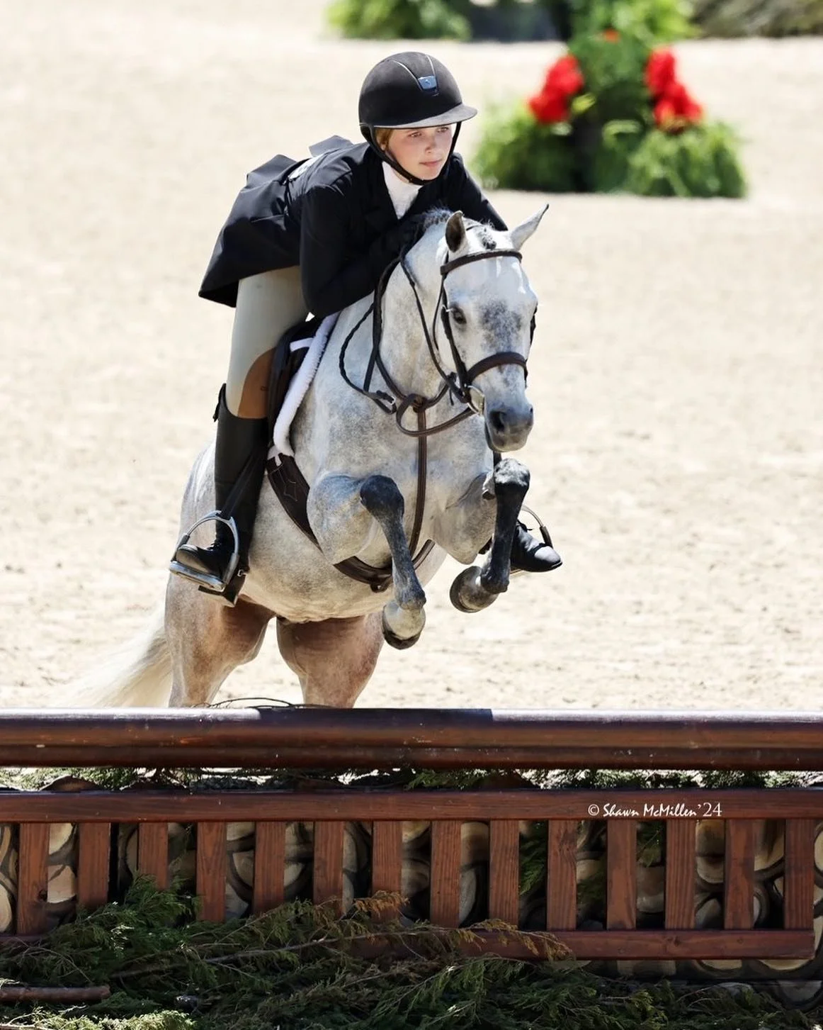 2010 Connemara medium mare - This is an extremely special pony to give any walk trot kid confidence all the way to Pony Finals. She’s an expert at taking a walk trot kid into their first canter with her uphill build and smooth gates. Auto change around a short stirrup course. First little pony derby or taking ribbons at pony finals. May Day was 4th out of 187 in the USEF pony medal finals in Kentucky in 2023. She has taught lessons , been to pony finals twice, pony derby finals , costume wearer extraordinaire, trail pony .. she’s so game for whatever the little kid is. She really is a true unicorn pony. No maintenance, no prep at home or shows.