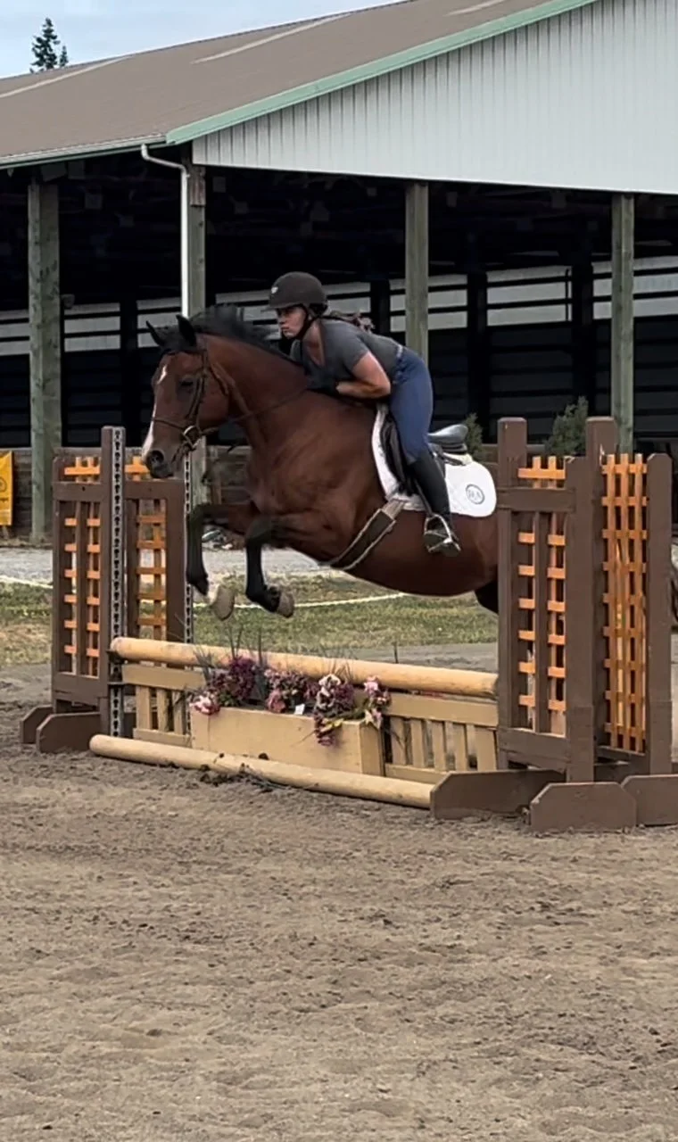 Took current kid short stirrup to Pony Finals. Has a stunning look in the ring with a quiet rythmic canter. Very good flat trot with a lot of reach. Auto change and always jumps. Sadly outgrown and looking for his next kid to bring along the pony rings. Lots of tears moving off this pony.